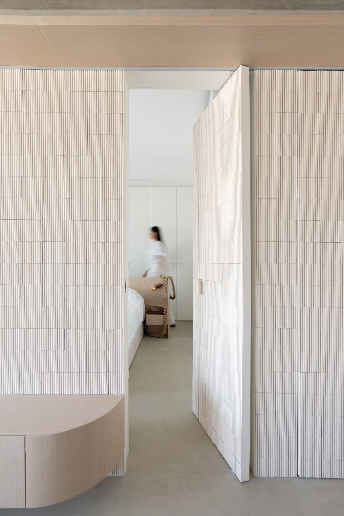 - رنگ درب همرنگ دیوار (Invisible Door) : این کار باعث مخفی شدن درب در دل دیوار میشود و به یکپارچگی فضا کمک زیادی میکند.